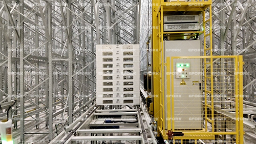 項目采用雙伸位彎軌堆垛機,該設備可以在多個巷道內間自由穿行,效率有限前提下,大大減少了設備投入。